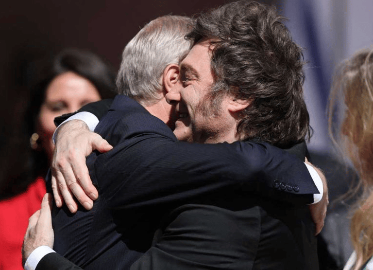 Antes del inicio formal del evento, ambos dirigentes protagonizaron una de las imágenes más comentadas de la jornada: un abrazo en el ingreso al edificio legislativo. El saludo se produjo minutos previos a la jura presidencial y marca la cercanía política e ideológica entre los dos líderes.